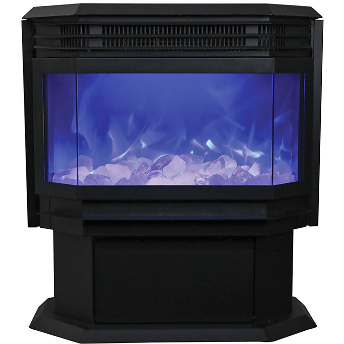 A distinctly European styled free standing electric fireplace from Sierra Flame by Amantii. This Fireplace features a beveled glass viewing area that gives an almost ‘see-thru’ effect on three sides.