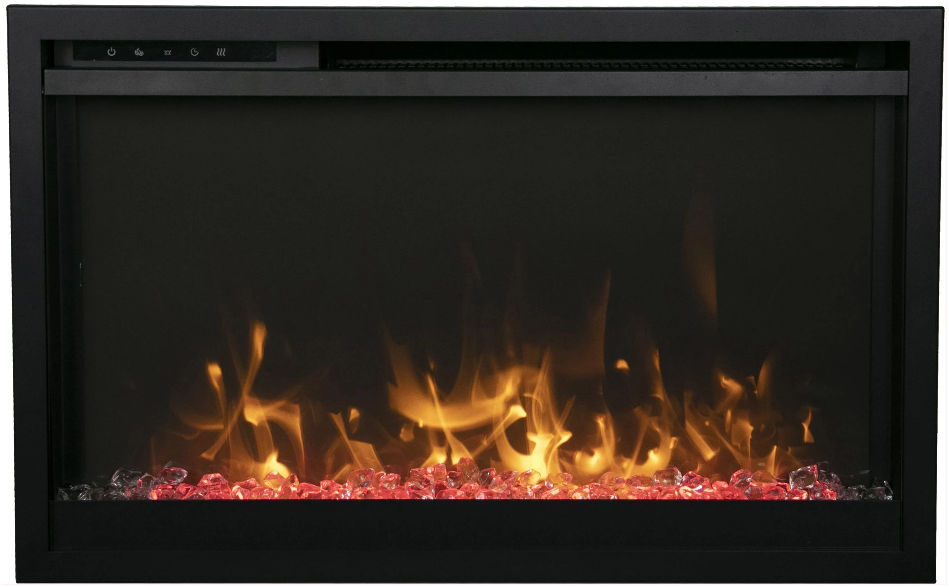 - Clean and Seamless in Design: This fireplace features a full-frame viewing area