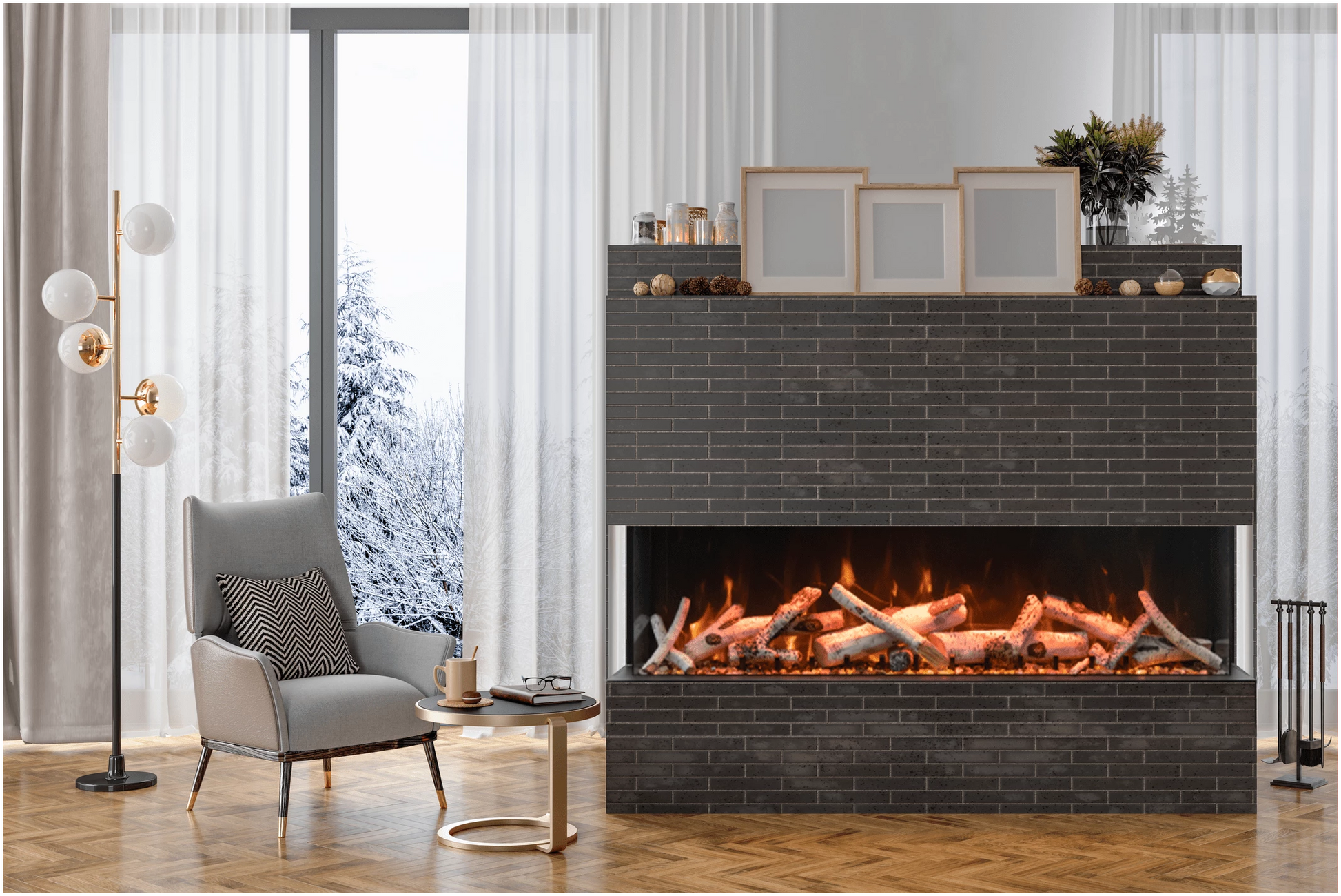 - 3 sided built in electric fireplace