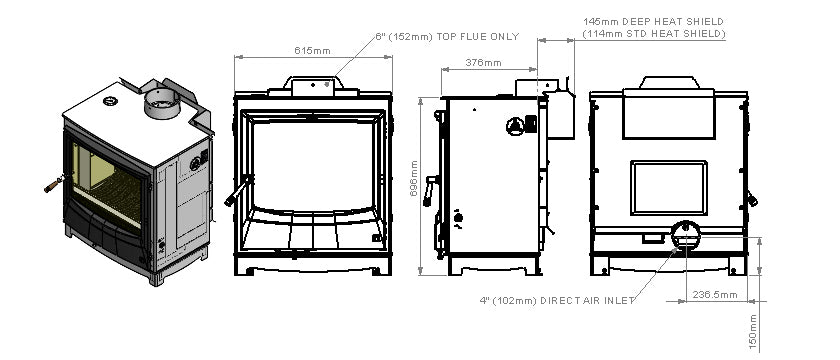With its magnificent view of the fire, this contemporary wood burner is the complete stove package.