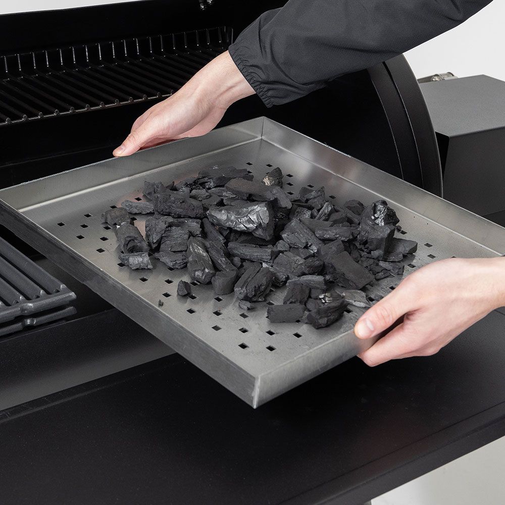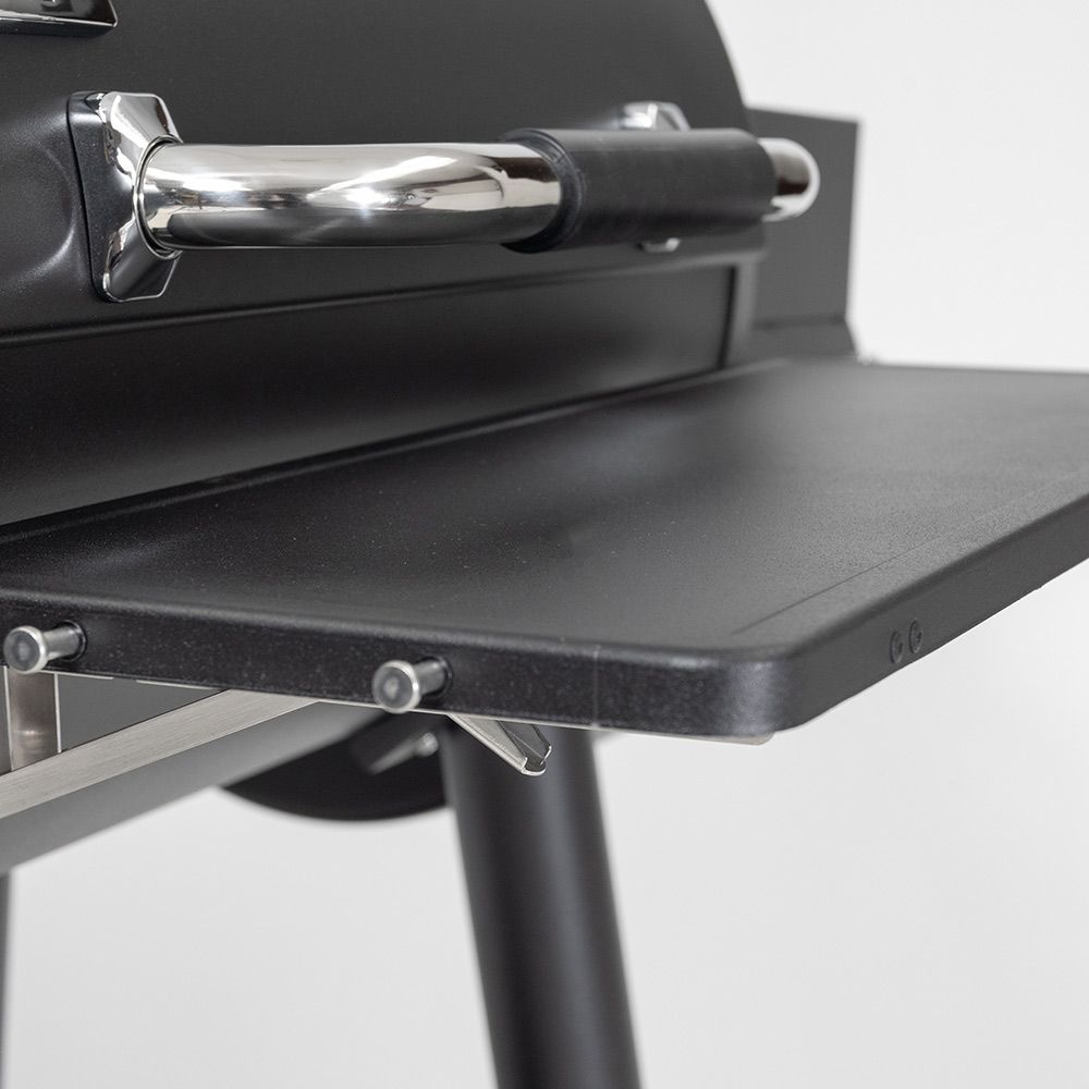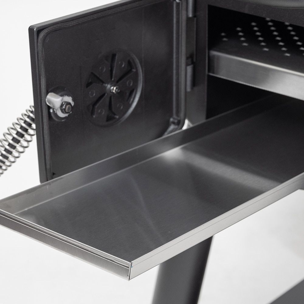 The Regal charcoal offset 400 Smokers body is constructed from 2 mm / 14 gauge steel with 500 sq. in. primary cooking surface, heavy duty cast iron cooking grids. Air vent system includes a chimney-style stack with Roto-Draft damper technology. Also features dual-purpose smoke diffusing charcoal trays and a removable ash tray in both cooking chambers.