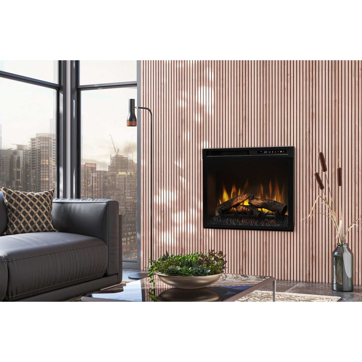 With a thin, black glass surround revealing flames that are vivid day or night, the Multi-Fire XHD invites you to get cozy by the fire. Customize the flames above the hand-finished, inner-glow logs, and create the perfect atmosphere by adjusting the LED lighting with the remote control or built-in touch controls. With safe and powerful ceramic heater warming up to 1,000 sq. ft., the Multi-Fire XHD is the ideal way to add comfort and ambiance to any room.