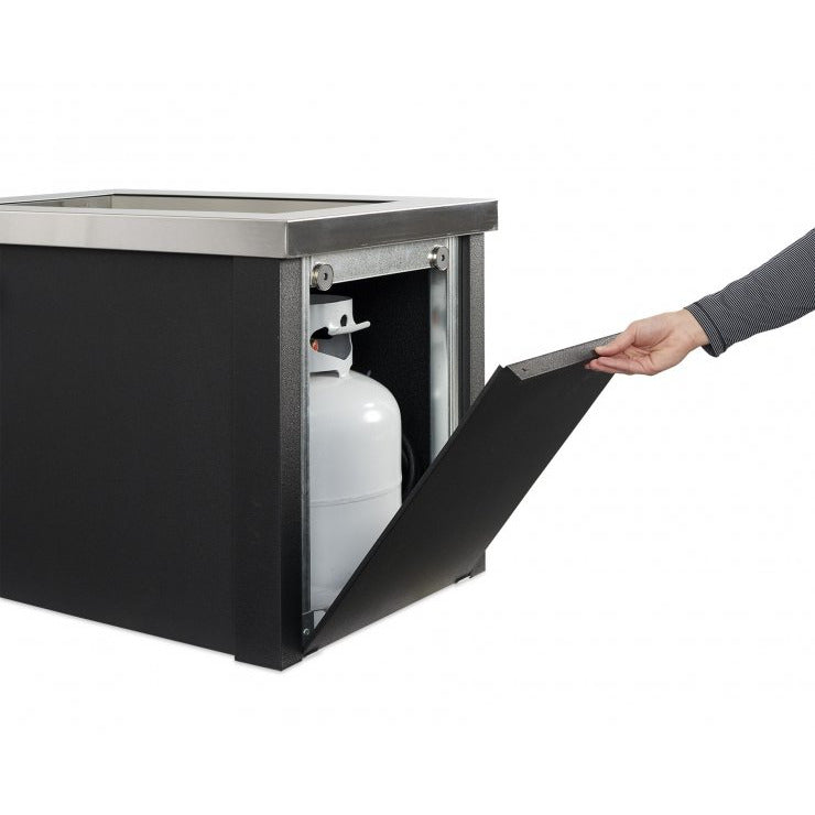 The Stainless Steel Providence Gas Fire Pit Table brings the family together in a modern and simple fashion. Watch the mesmerizing collection of flames reflect off of a stainless steel trim top for the ultimate wow factor. A black powder-coated metal base completes the ultramodern look.