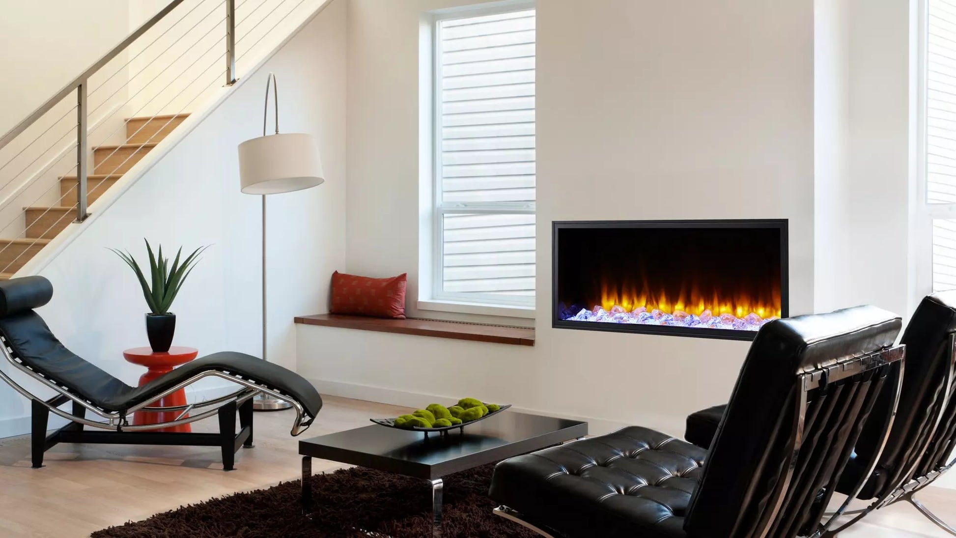 Experience luxury living in our sleekest design. The Scion electric fireplace brings finishing materials up to the edge, while crystal glass, driftwood logs, LED flames and ember colors reflect you.